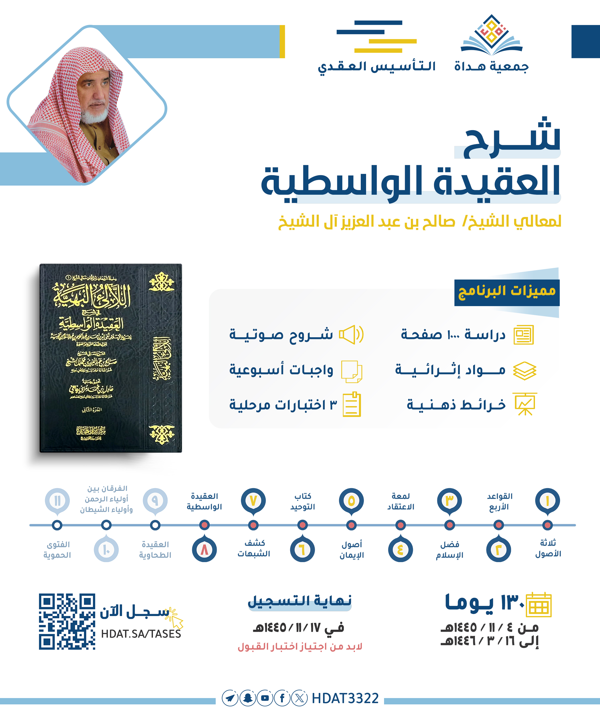 عن فتح التسجيل في مدارسة شرح العقيدة الواسطية ضمن برنامج "التأسيس العقدي" لمعالي الشيخ/ صالح آل الشيخ في ١٣٠ يومًا -