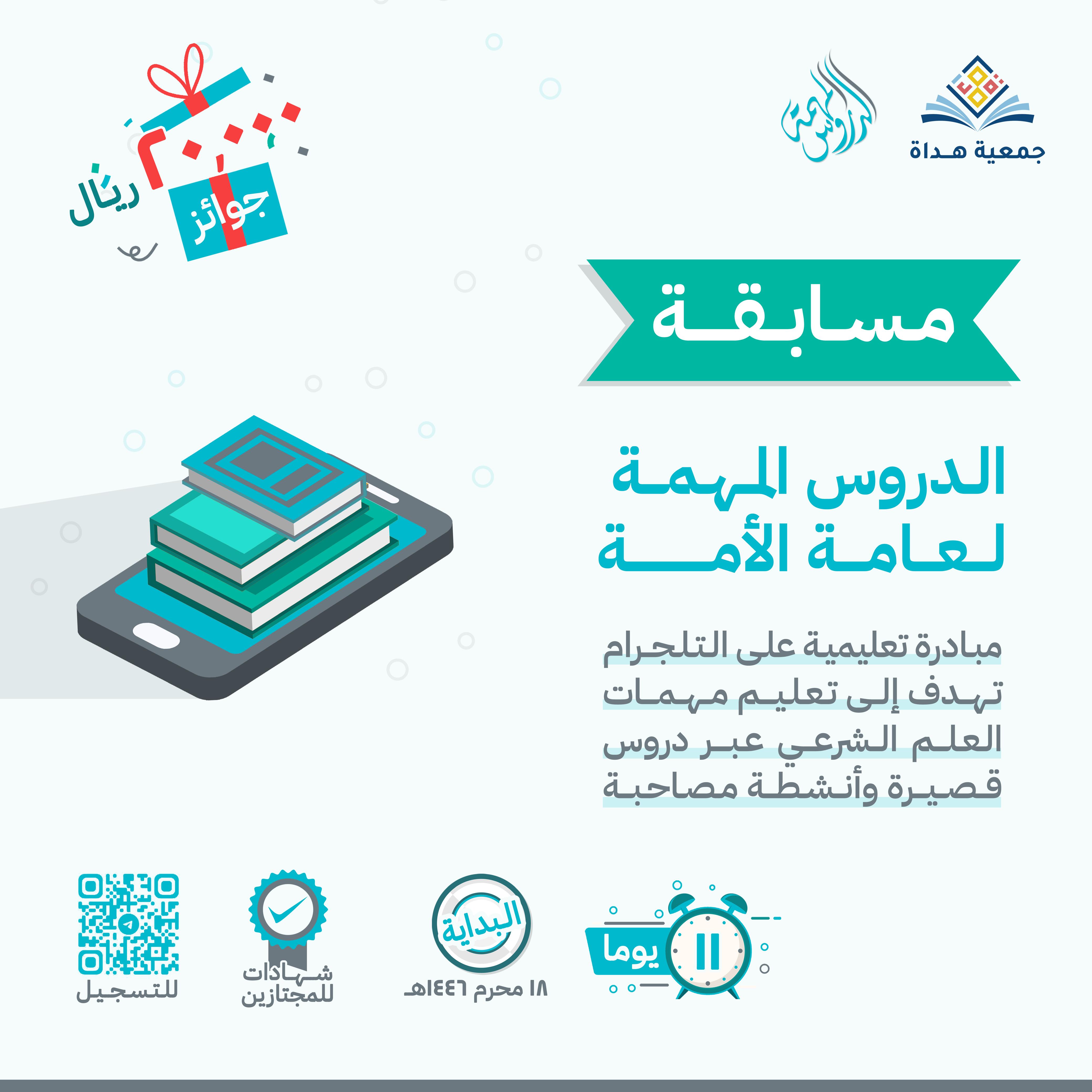 مسابقة تعليمية لتعليم المسلمين ما لا يسعهم جهله مع جوائز تحفيزية تصل قيمتها ل20000 ألف ريال سعودي.