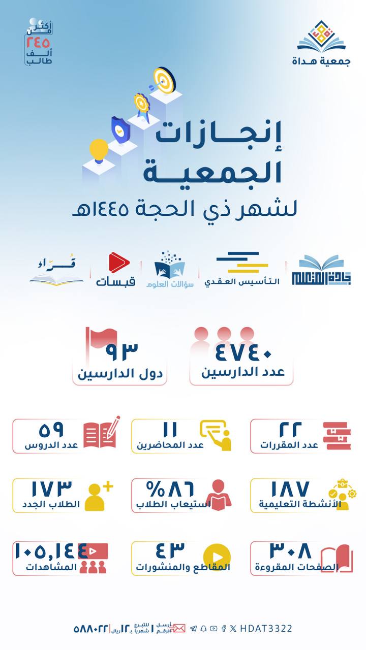 تعلن جمعية هداة الخيرية عن بداية اختبارات برنامج جادة المتعلم